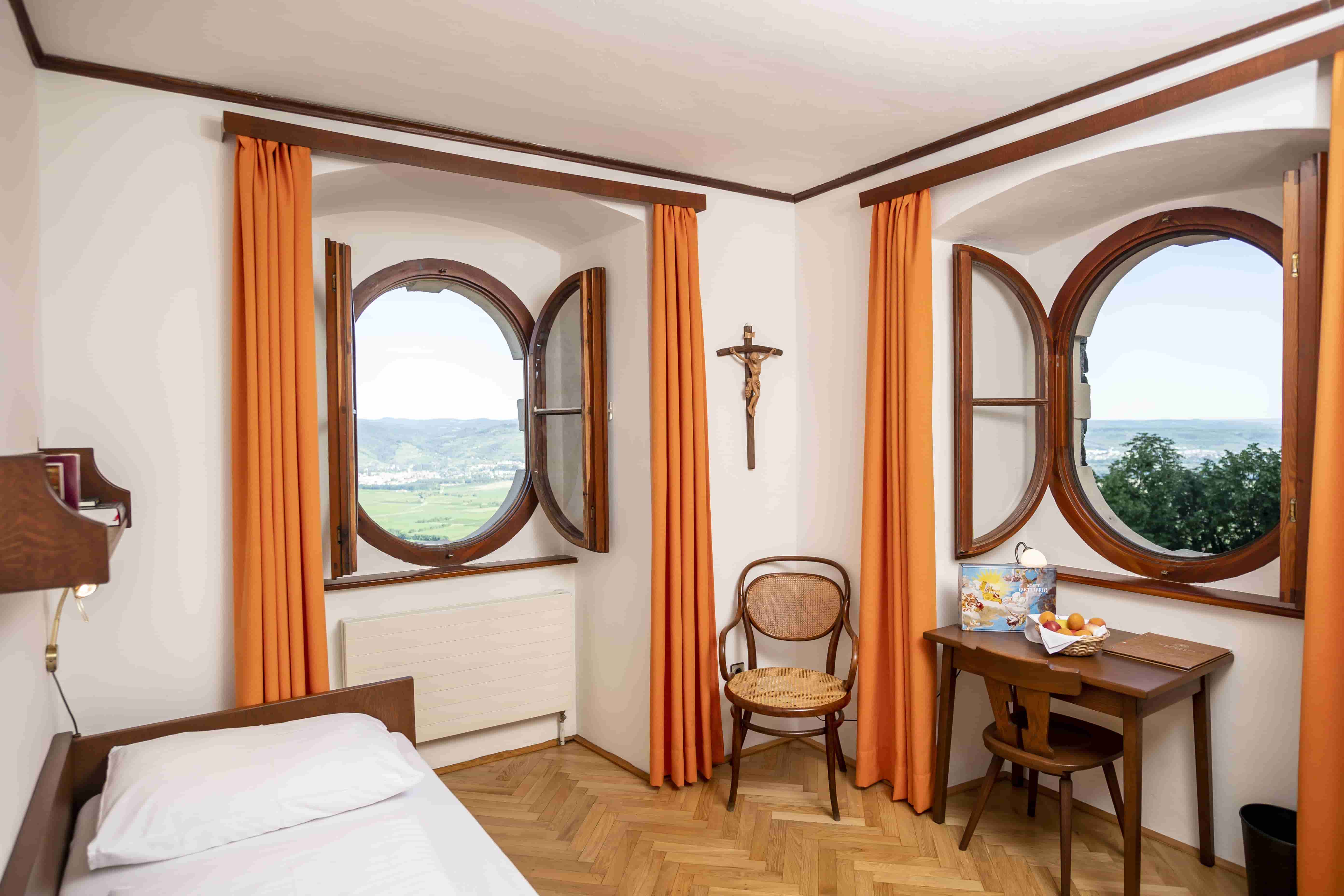 Die Zimmer verfügen über einen Blick in den Innenhof oder in den Dunkelsteiner Wald.